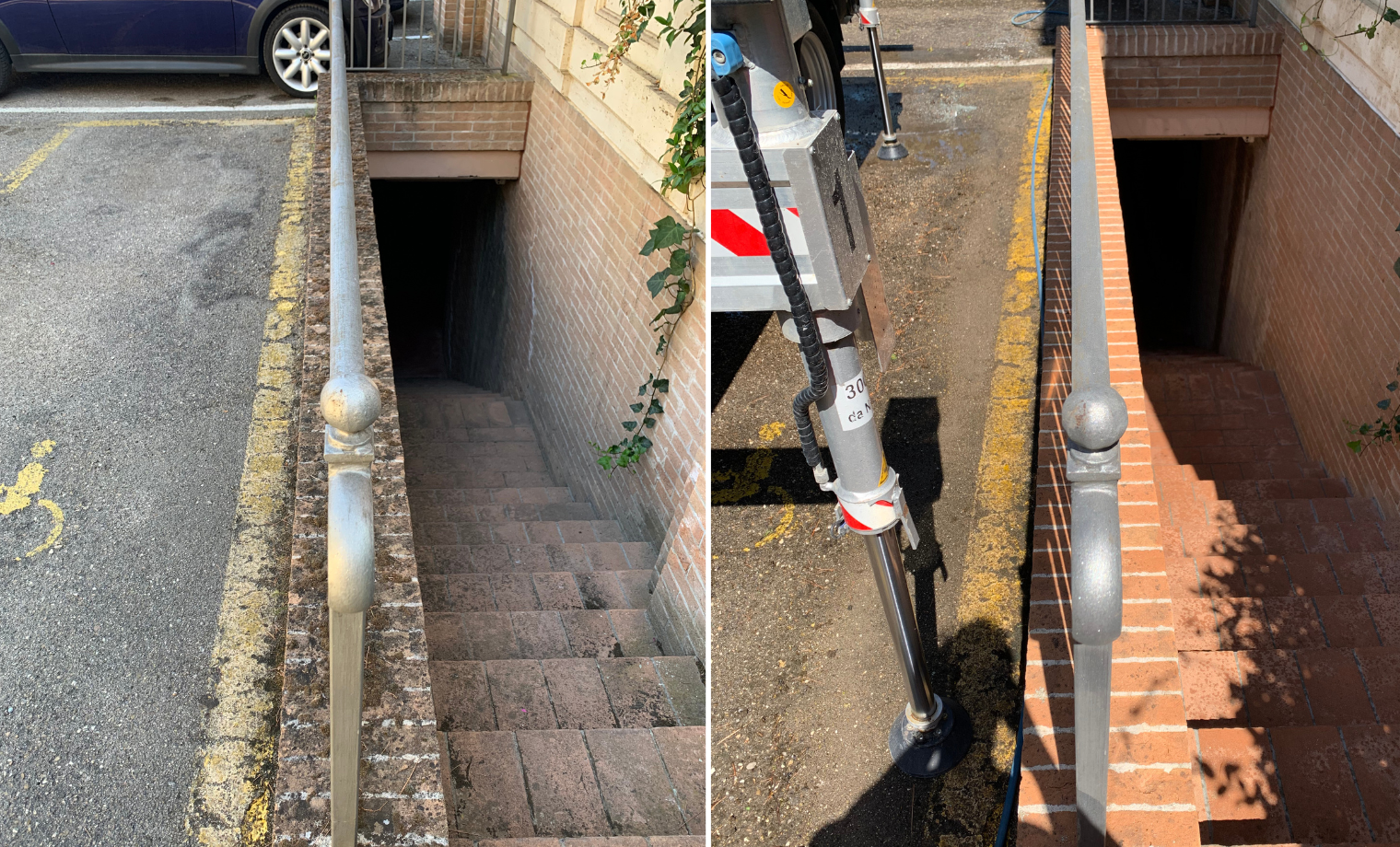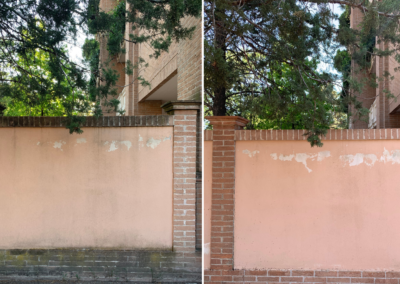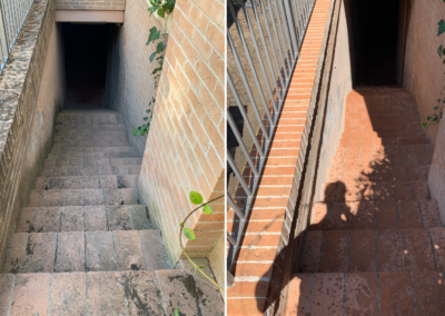 L’intervento di lavaggio facciate e pavimenti è stato eseguito utilizzando idrolavaggio professionale, una tecnologia altamente efficace e non invasiva, ideale per la rimozione di sporco ostinato senza danneggiare i materiali. In particolare, per la pulizia delle facciate abbiamo utilizzato una lancia a ventaglio, che consente di modulare con precisione la pressione dell’acqua in base alla delicatezza della superficie.